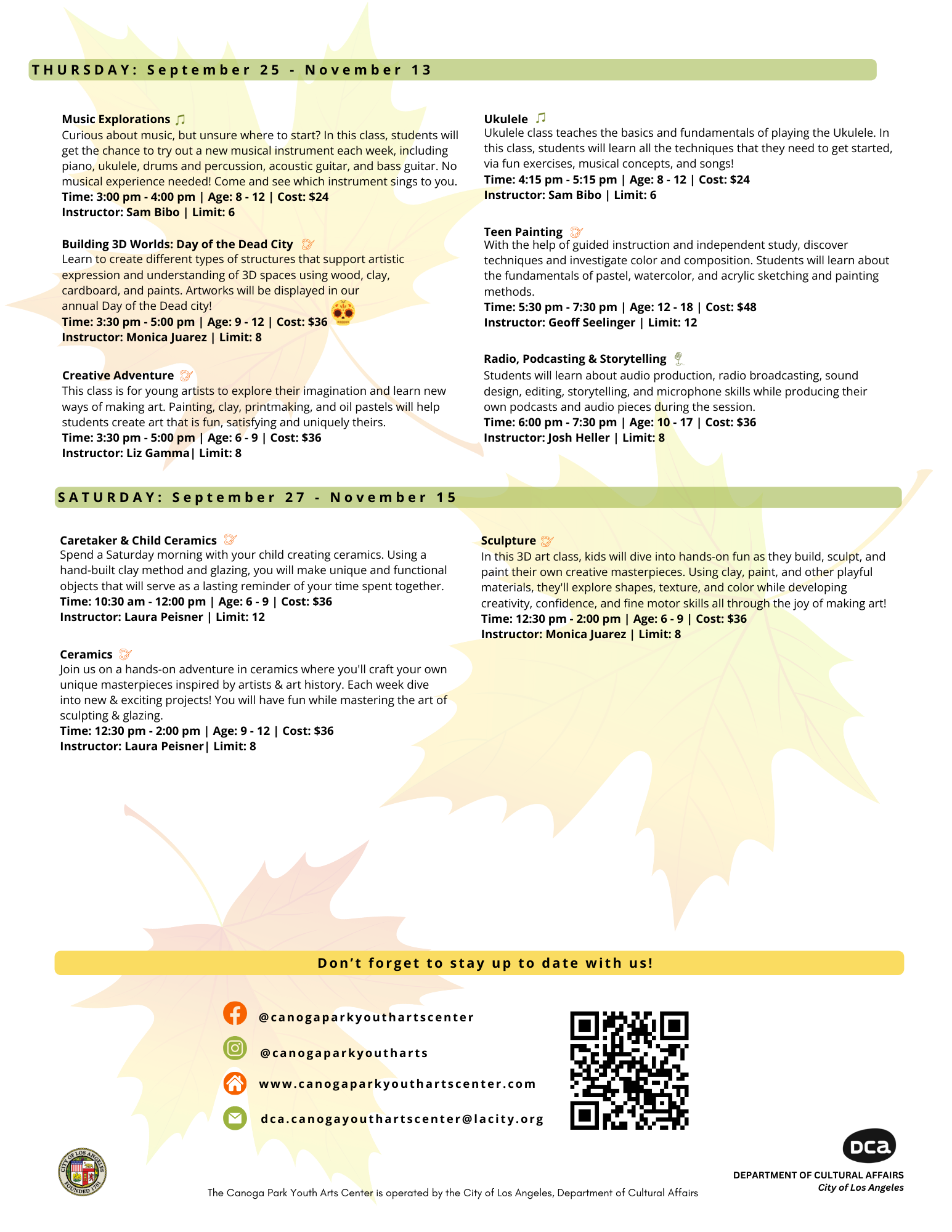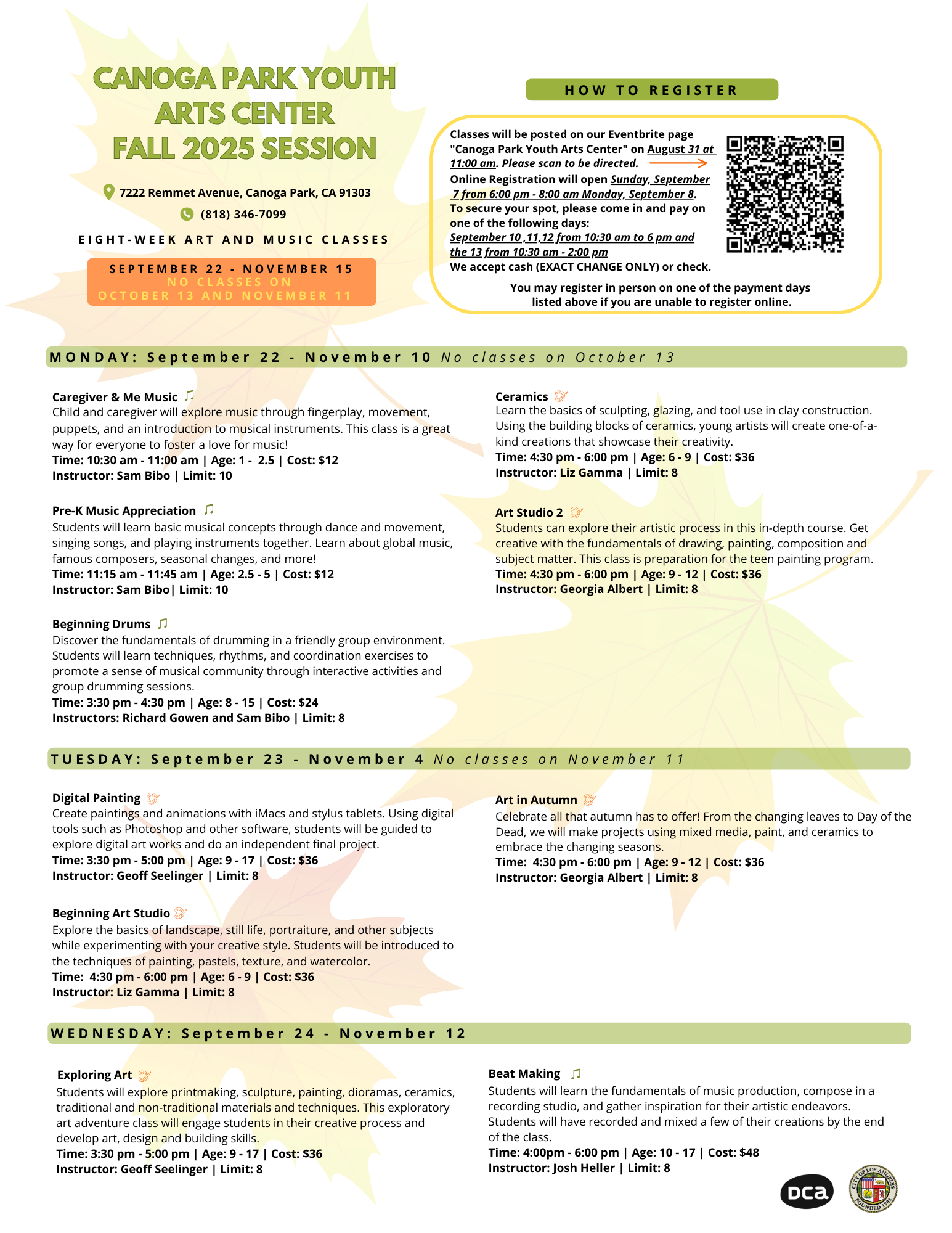 Visit Eventbrite to view classes. Registration opens Sunday, September 7th, 2025 from 6:00 am - 8:00 am Monday, September 8th, 2025.