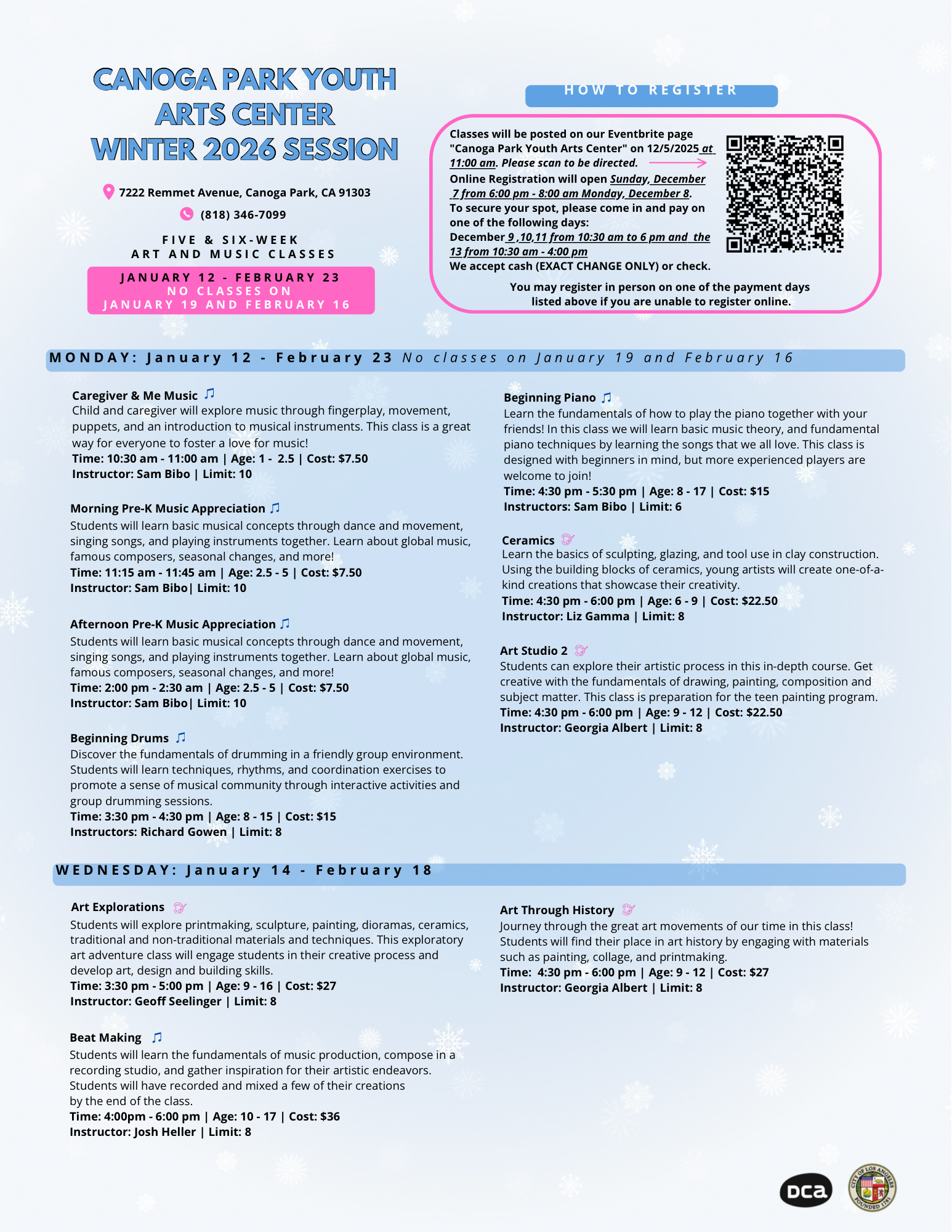 Visit Eventbrite to view classes. Registration opens Sunday, December 7th, 2025 from 6:00 pm - 8:00 am Monday, December 8th, 2025.